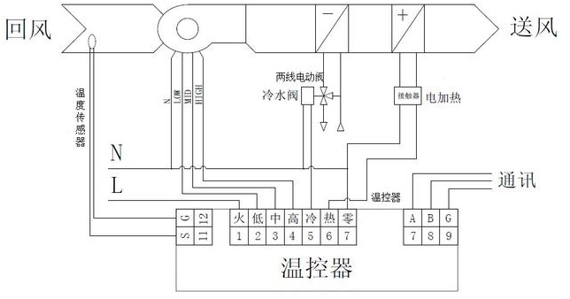電加熱雙管系統(tǒng)由溫控器、風(fēng)機盤管、電動閥、電加熱器和接觸器等組成。